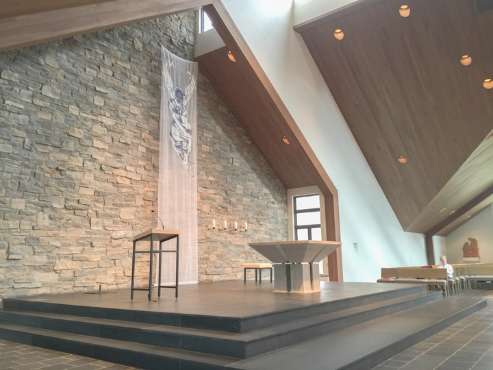 The liturgy like the building itself is a modern example of the Roman liturgical ideal of noble simplicity. Both congregation singing and the choir are strong presences at all Masses. The pastor is a scripture scholar who teaches at the diocesan seminary. His homilies are posted here. They may be read or heard.